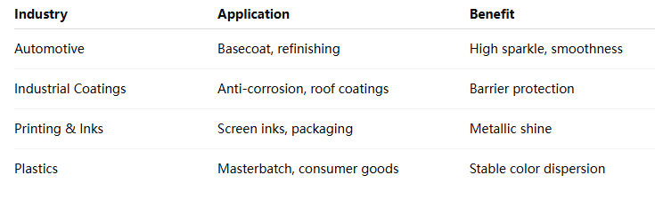 Aluminum Paste is widely used in industries requiring metallic glossy effects and protective performance. Key applications include: